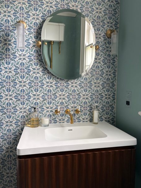 Working to a budget this small cloakroom refurbishment transformed a small space that didnt function well and by simply repositioning the basin it provided a space that works and looks great. I always think that you can go bold in a cloakroom and the dark green certainly makes an impact!